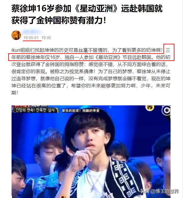 话说,年龄向小了说嘛,我们可以原谅,毕竟谁不喜欢自己年轻一点呢,可是要是往老了说是什么鬼,彰显成熟么?2015年,蔡徐坤参加综艺节目《星动亚洲》,节目中介绍蔡徐坤年龄是18岁。按2015年计算,2015-1998=17,应为17周岁,难道这个节目是按虚岁算的?2018年网络上有一篇文章中,介绍到蔡徐坤的年龄为16岁,数学学的实在是不好,这个三年前应该怎么来计算?难道蔡徐坤参加了2次《星动亚洲》我们不知道?