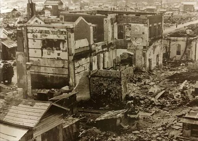 “1944年12月,美军第十四航空队的92架B-29轰炸机、33架B-24轰炸机,及149架护航战斗机,向汉口投下了500吨的燃烧弹。随即火光连天,哀声四起,大火烧了三天三夜,汉口近一半被毁。月底,B-29轰炸机再一次来到了汉口上空,投下燃烧弹,致使汉口棚户居民区大火蔓延了整整5公里。”