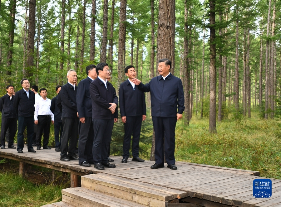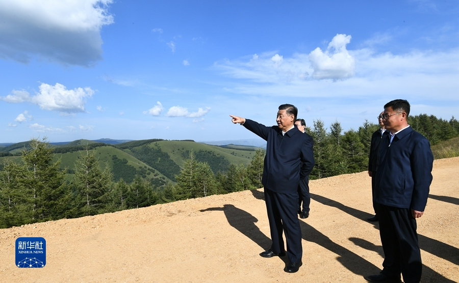 8月23日至24日,中共中央总书记、国家主席、中央军委主席习近平在河北省承德市考察。这是23日下午,习近平在塞罕坝机械林场月亮山考察。